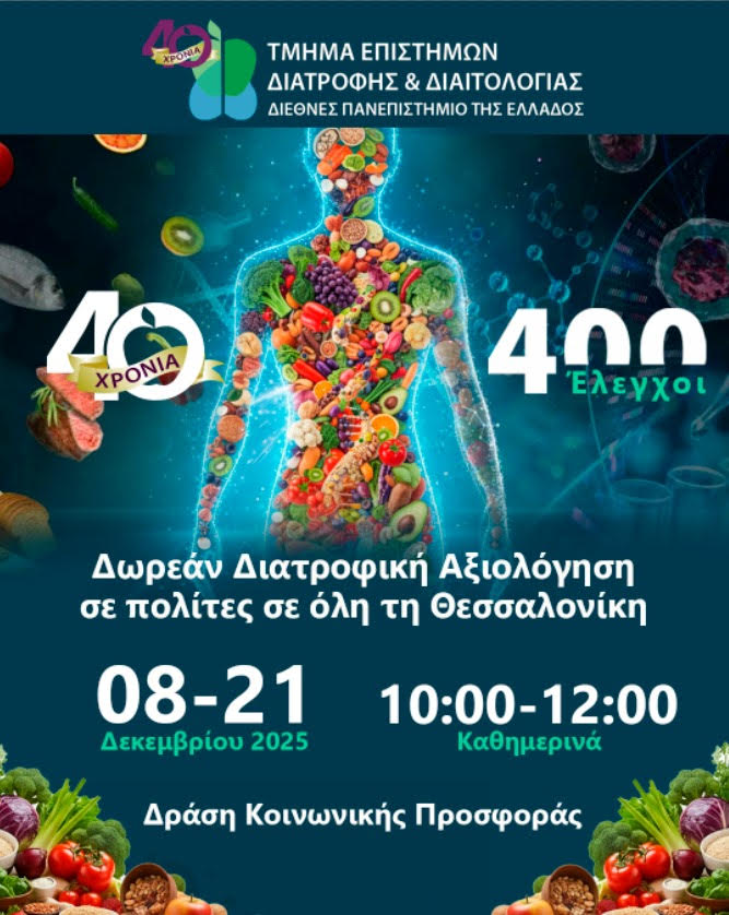 Το τμήμα Επιστημών Διατροφής και Διαιτολογίας ΔΙΠΑΕ γιορτάζει τα 40 χρόνια του και σε συνεργασία με τους παρακάτω απόφοιτους του, προσφέρει δωρεάν μια διατροφική αξιολόγηση: